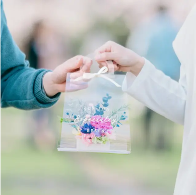 アレンジは全8種の中からお好きなお花をクリアトートに入れてお届けする。