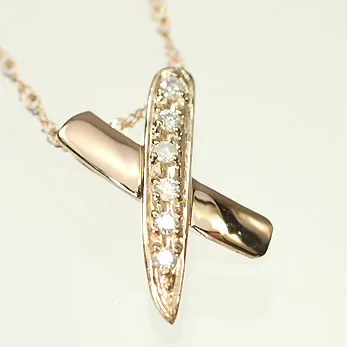 天然ダイヤモンド0.04ct×ピンクゴールド キスマークペンダント(ネックレス)