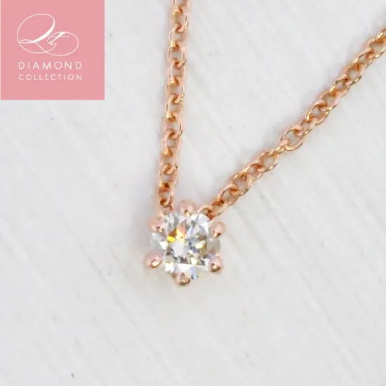 QTダイヤモンドコレクション ダイヤモンド0.1ct 一粒ネックレス ピンクゴールド