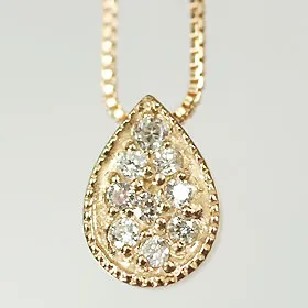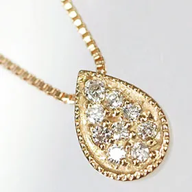 シズク型のモチーフに9石のダイヤをセットした、クラシカルな雰囲気が漂うペンダントである。