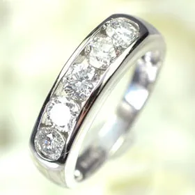こちらも高級ダイヤリングの定番デザインで、個人的にもお薦めですね。テリのある綺麗なダイヤを5石(合計1カラット)一文字にセットした、非常に強く輝くダイヤリング。