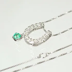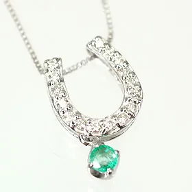 5月の誕生石エメラルドが、ダイヤを敷き詰めた馬蹄からぶら下がる豪華なペンダントで、馬蹄は幸運のモチーフとしてとても人気な上、そこから誕生石がぶら下がりますので贈り物にも最適だ。