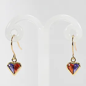 赤と紫の美しいキュービックジルコニアをハートフレームにセットしたプチピアス。
