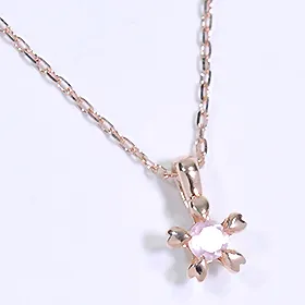 桜をモチーフにした愛くるしいトップ。センターにはローズクォーツを1石セットしている。